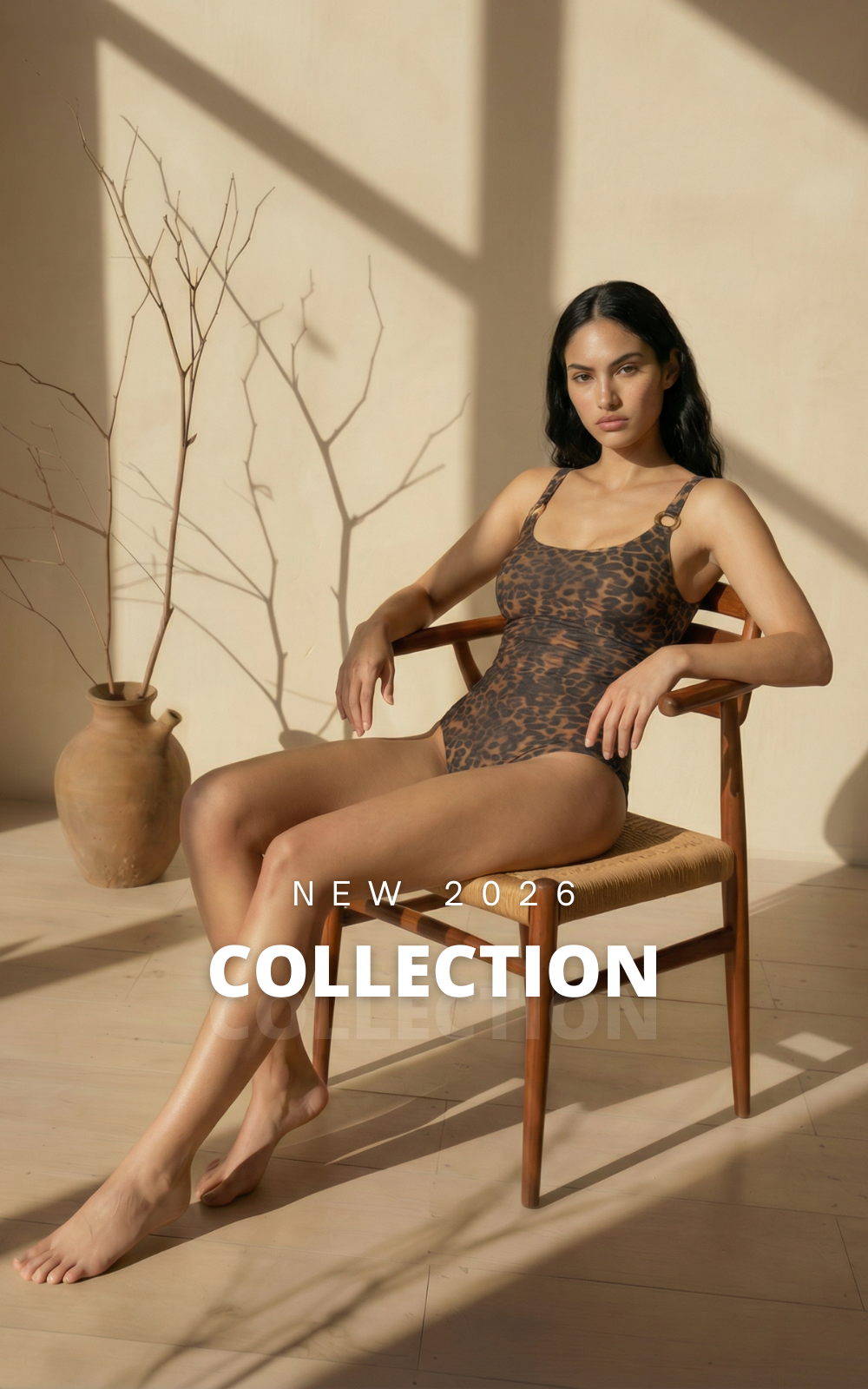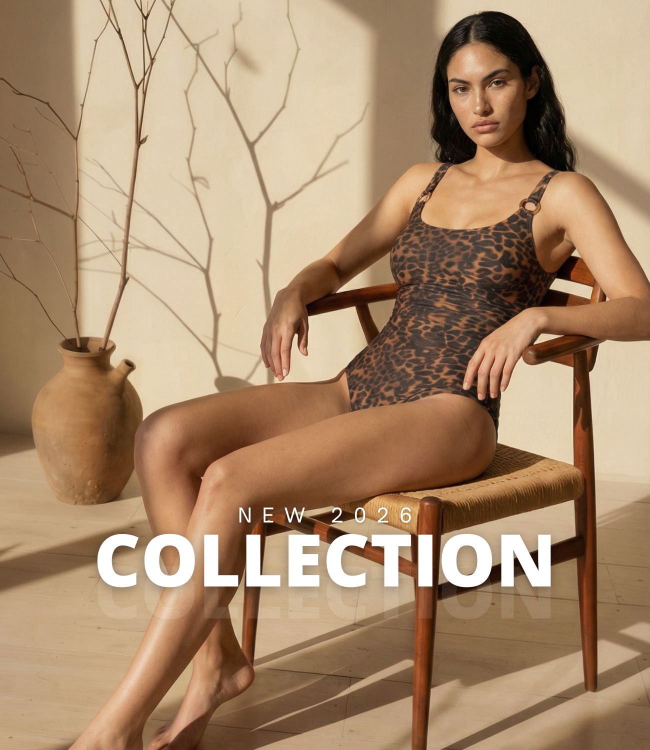 בגד ים שלם גזרת גופיה קלאסית מנומר